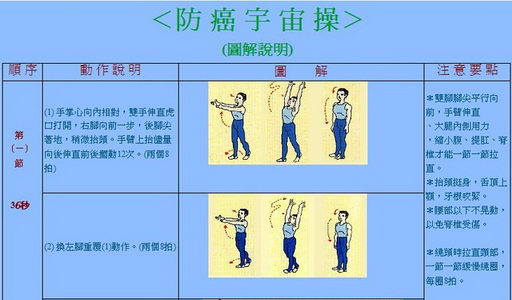 而在運動方面,研究出了「防癌宇宙操」。